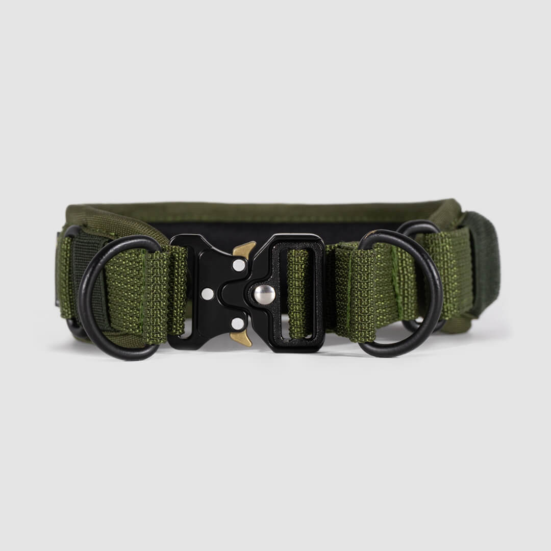 El Collar COMANDO Verde Oliva es una pieza de equipamiento canino diseñada bajo los mismos estándares de resistencia y funcionalidad que caracterizan a la línea táctica de Felcan. Fabricado con materiales de grado militar y pensado para perros de trabajo, aventura o entrenamiento, combina durabilidad extrema con una estética robusta y profesional.